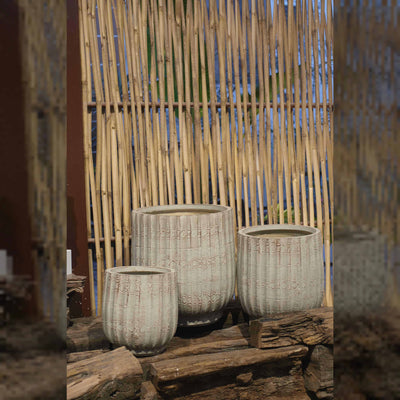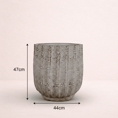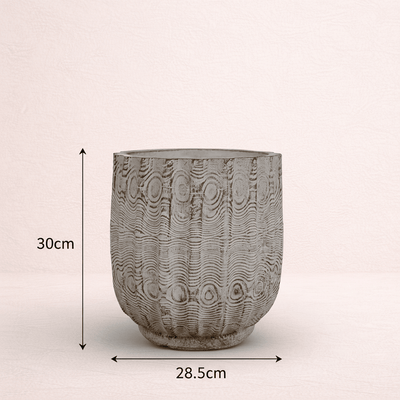 A rounded, bowl-form planter with a clean rim and an all-over ripple texture that feels sculptural and calming. Available in two earthy colourways, it brings subtle movement and a crafted, statement look to modern, boho, and minimal spaces.